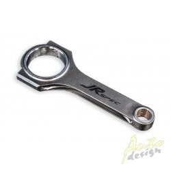 Sada kovaných ojnic značky JRspec vyrobených pomocí technologie H-beam.Vyrobené z vysoce kvalitní kované oceli ANSI4340 (EN24), pevnost přesahující 200 kW na cylindr.Před opracováním vakuově odplynované.Tepelně upravené (normalizované).Po úpravě povrchově zbroušené (odpružené).Zarovnané hrany.Každý otvor byl dvakrát honován (před a po opracování paty), což zaručuje ideální kruhový tvar (tolerance 0,01mm). Ojnice jsou vyrovnané (ideálně rovné v horizontále) do 0,01 mm – rozdíly u mnoha značkových výrobců překračují dokonce 0,1mm, což má za následek rychlejší opotřebení ložisek!Každá jednotlivá sada ojnice + pata má své individuální číslo. Sady jsou baleny podle váhy a vyvážené END to END. Hlavice jsou navíc posílené, obsahují bronzovou tulej v místě osazení svorníku pístu. Ojnice jsou testované na Calibře Tsunami s výkonem více než 1500 koní.