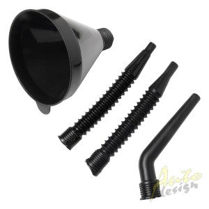 Univerzální 4 dílná sada trychtýřů pro přelévání kapalin. Jendotlivé kusy jsou opatřeny očkem pro možnost zavěšení a jsou rozměrově odstupňovány pro nejrůznější použití. V sadě jsou trychtýře o průměrech 52 - 118 mm s celkovou výškou 80 - 150 mm.