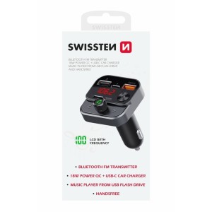 Poslech hudby Prostřednictvím Bluetooth lze bezdrátově streamovat hudbu přímo z vašeho mobilního telefonu. Využít můžete USB-A vstup pro připojení flashdisku s kapacitou až 64GB. Jednoduché posouvání mezi skladbami umožňují tlačítka na FM transmitteru. Pro lepší poslech je transmiter vybaven tlačítkem pro zvýraznění basů. Nabíjení FM transmiter slouží zároveň jako autonabíječka. Výstupem USB-C lze dobíjet výkonem 12W a výstup USB-A je vybaven technologií rychlého nabíjení Qualcomm 3.0 18W. Handsfree FM transmiter je vybaven funkcí handsfree pro uskutečnění telefonních hovorů. Pro ovládání těchto hovorů je transmiter vybaven multifunkčním tlačítkem. Specifikace model: 20114030 Vstup: 12V - 24V DC 4A Výstup USB-C: 5V DC 2,4A Výstup USB-A: QC3.0: 5V DC 3A, 9V DC 2A, 12V DC 1,5A 18W