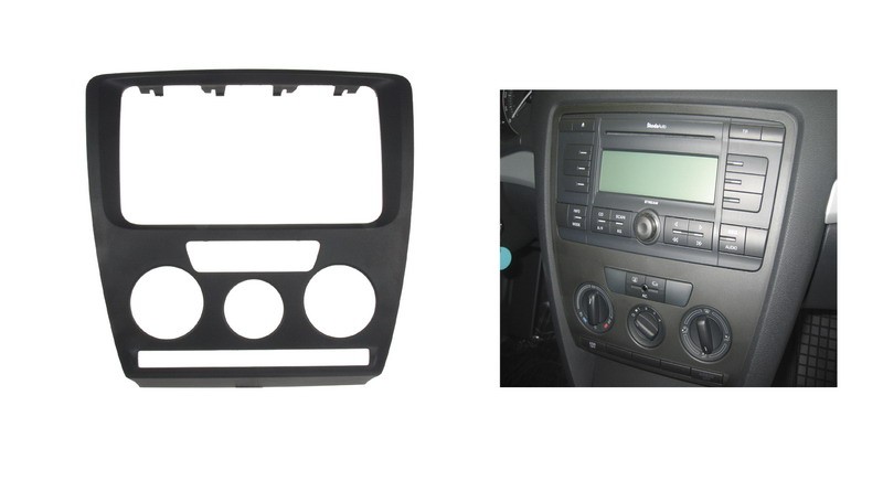 Plastový adaptér slouží pro montáž rádia do vozu Škoda Octavia bez Climatroniku.