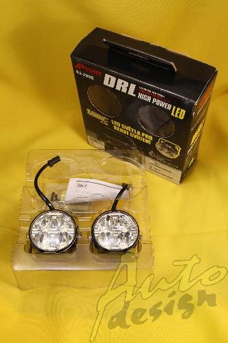 LED světla pro denní svícení s homologací. Sada světel je doplněna modulem, který zajistí automatické rozsvícení po zapnutí zapalování a zhasnutí při zapnutí potkávacích světel vozidla. Určeno pro vozidla 12V. Rozměry: průměr 90mm.