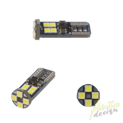 Náhradní LED žárovka s paticí T10, bílá, 12x vysocesvítivé LED diody 3030SMD, vhodná do parkovacích světel u starších vozidel. Svítivost LED diody je větší u žárovky 12 V 5 W. Díky teplotě světla 6000 K jsou LED žárovky ideálním doplňkem do reflektorů s xenonovými výbojkami, kde žluté světlo obyčejné žárovky působí rušivě.