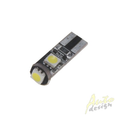 Náhradní LED žárovka s paticí T10, bílá, s vestavěným rezistorem (nehlásí závady řídící jednotky na žárovce u nových vozidel), 3x vysocesvítivé 3-čipové SMD LED diody, vhodná do parkovacích světel u novějších vozidel, odpovídá žárovce "celosklo" W5W. Díky teplotě světla cca 6000 K jsou LED žárovky ideálním doplňkem do reflektorů s xenonovými výbojkami, kde žluté světlo obyčejné žárovky působí rušivě.