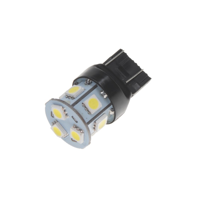 Náhradní LED žárovka s paticí T20 (7443 - W3x16q ), bílá, dvouvlákno, 9 3-čipových SMD LED diod. Tato žárovka se používá především v automobilech dovezených z USA automobilky Dodge, Ford, Chrysler.