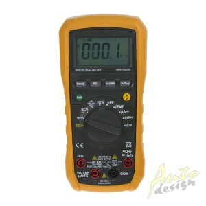 Odolný model s automatickou volbou rozsahů. Model 45101 je ideální pro domácí amatérské použití, ale zvládnete s ním i profesionální měření do 1000 V. Vlastnosti - CAT III 1000 V / CAT IV 600 V - 4000 digitů - auto Range - měření proudu AC/DC - bezdotyková zkouška napětí - měření kapacity - měření odporu - měření frekvence a Duty Cycle - měření teploty - funkce podsvícení displeje - test diod - test tranzistorů - akustický test průchodnosti - funkce Hold - funkce MAX/MIX - ukazatel vybitých baterií - odolný pogumovaný kryt - funkce automatického vypnutí Technické parametry - max. měřená hodnota V/AC: 750 V - max. měřená hodnota V/DC: 1000 V - min. měřená hodnota V/AC: 0.1 mV - min. měřená hodnota V/DC: 0.1 mV - měření proudu: AC/DC - min. měřená hodnota A/AC: 0.1 µA - min. měřená hodnota A/DC: 0.1 µA - max. měřená hodnota A/AC: 20 A - max. měřená hodnota A/DC: 20 A - rozsah měření odporu: 0,1 Ω - 40 MΩ - rozsah měření frekvence: 0,001 Hz - 10 MHz - rozsah měření kapacity: 0,01 nF - 4000 µF - typy multimetrů: Ruční multimetr - displej (counts): 4000 - kategorie měření: CAT III 1000 V / CAT IV 600 V - rozměry: 195 mm x 92 mm x 55 mm - hmotnost: 380 g Rozsah dodávky - multimetr - 9 V baterie - měřící hroty s kabely - čidlo (senzor) měření teploty - adaptér pro měření polovodičů - návod k obsluze