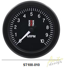Otáčkoměr STACK ST100 Sport 0-10 Tento manometr Stack ST100 Sport je velmi jednoduchý model otáčkoměru s výkonem a spolehlivostí Stack. Toto má standardní pohyb bez krokového motoru. Manometr Stack podporuje většinu motorů v rozmezí od 2 do 8 válců. LED osvětlení: bílá Průměr: 88 mm Rozsah: 0 až 10 000 ot / min Pozadí: černá