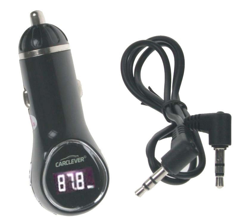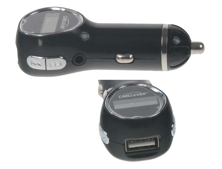 • přístroj strčíme do zásuvky zapalovače, na rádiu naladíme stejnou frekvenci nastavenou na FM modulátoru a připojíte přes AUX port (3,5 mm Jack) MP3 přehrávač nebo iPOD (kablík 3,5 / 3,5 mm Jack součást balení)