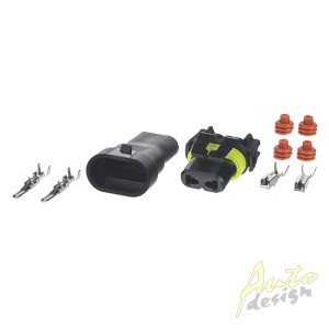 Vodotěsný konektor AMP 2-pólový, včetně pinů. Zatížení konektoru 24V, 14A. Balení 10ks.