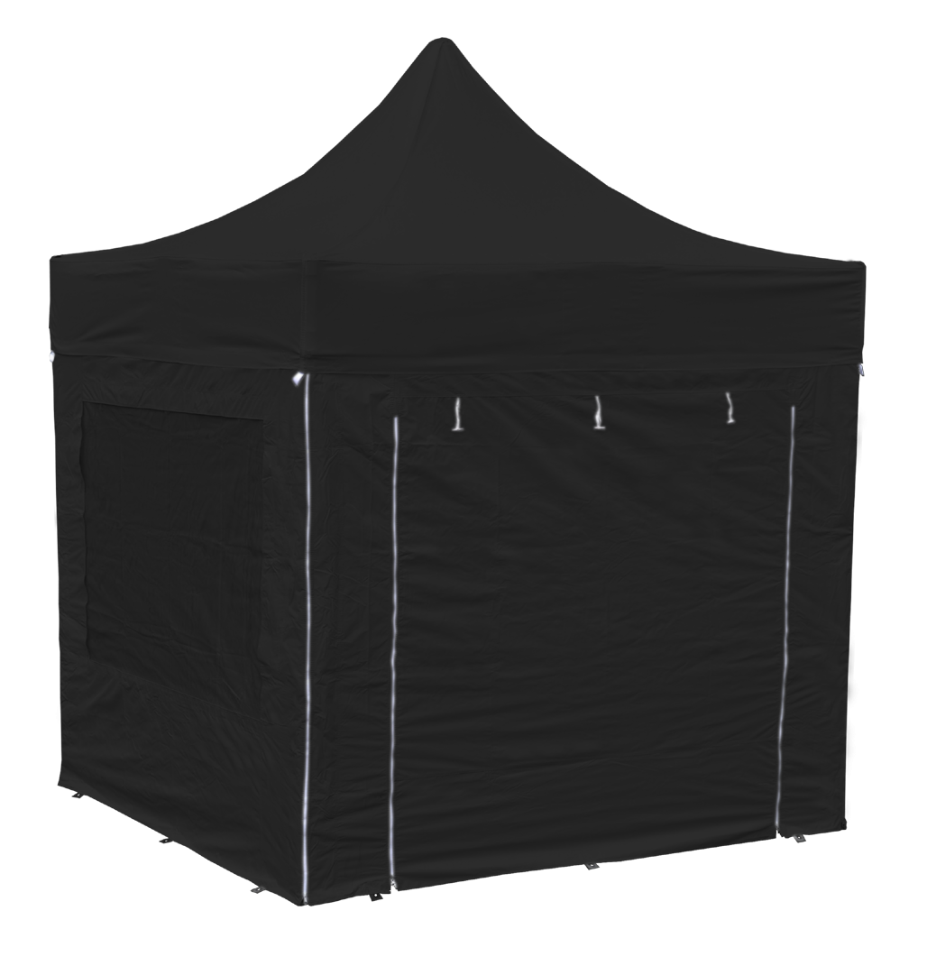 Volitelně dle variant "s/bez"- Plná PROFI sada 4 ks samostatných bočnic (POLYESTER s vnitřním PVC potahem) - kombinace 2 ks oken s vnitřními roletami a 2 ks rolovacích extra širokých dveří zapínatelných pomocí kvalitních zipů.