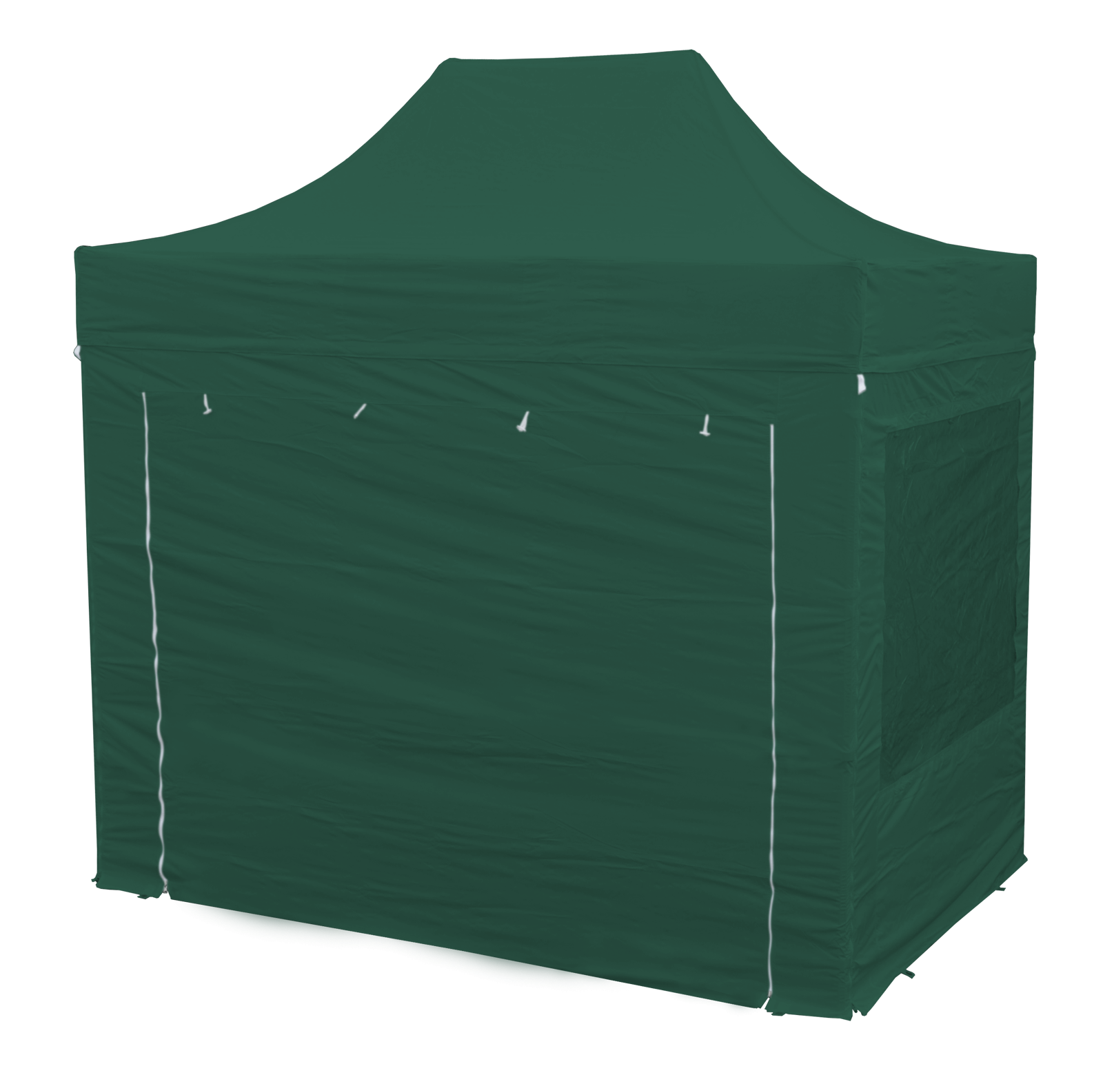 • Plná sada je kombinací 4 ks samostatných bočnic (POLYESTER s vnitřním PVC potahem) - kombinace 2 ks oken s vnitřními roletami a 2 ks rolovacích extra širokých dveří zapínatelných pomocí kvalitních zipů. Kromě verze 4,5mx3m jsou všechny ostatní velikosti KOMPAKT stanů čtvercového půdorysu, tzn. že všechny 4 bočnice jsou stejně široké a mohou být umístěny na jakoukoliv stranu stanu. Verze 4,5mx3m nabízí 2 ks rolovacích extra širokých dveří v šířce 4,5m a 2 ks oken s vnitřními roletami v šířce 3m.