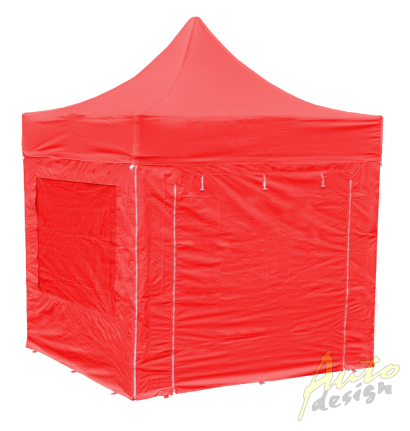 Volitelně dle variant "s/bez"- Plná PROFI sada 4 ks samostatných bočnic (POLYESTER s vnitřním PVC potahem) - kombinace 2 ks oken s vnitřními roletami a 2 ks rolovacích extra širokých dveří zapínatelných pomocí kvalitních zipů.
