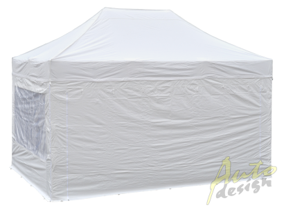 - Plná sada je kombinací 4 ks samostatných bočnic (POLYESTER s vnitřním PVC potahem) - kombinace 2 ks oken s vnitřními roletami (šířka 3m) a 2 ks rolovacích extra širokých dveří zapínatelných pomocí kvalitních zipů (šířka 4,5m).