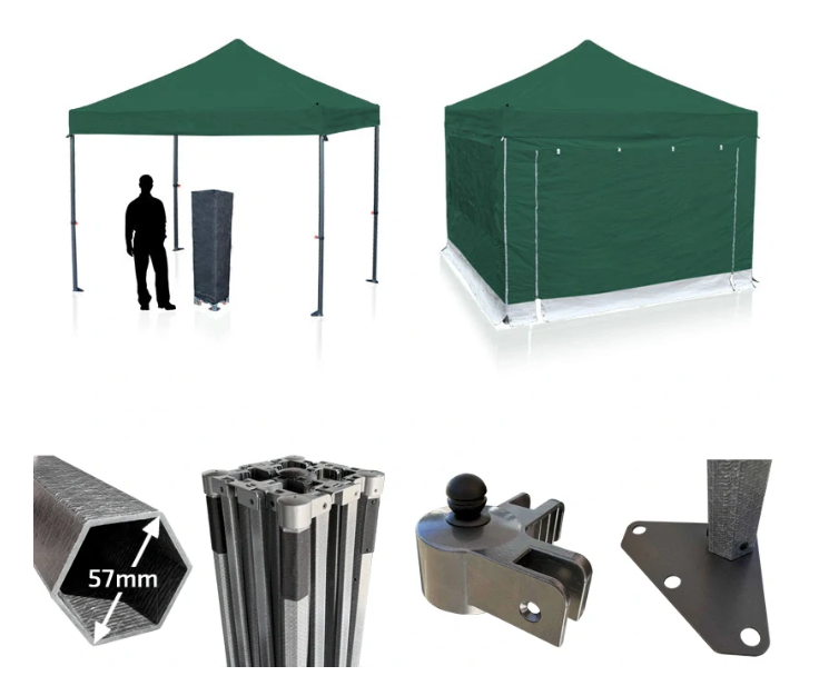 4m x 4m pevná konstrukce rámu z kompozitního materiálu (PROFI EXTREME COMPOSITE varianta).