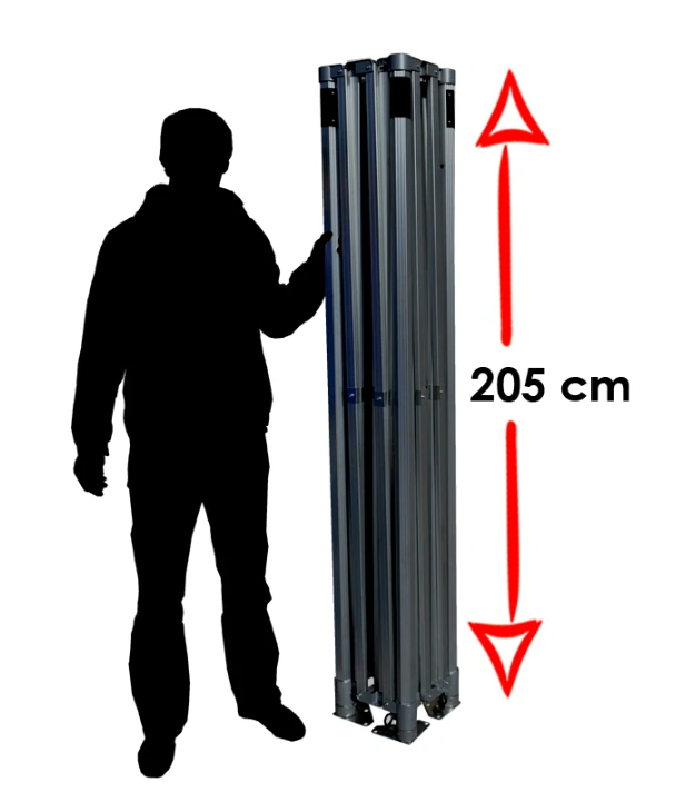 - Výška rámu (konstrukce) ve složeném (neotevřeném) stavu: 205cm.