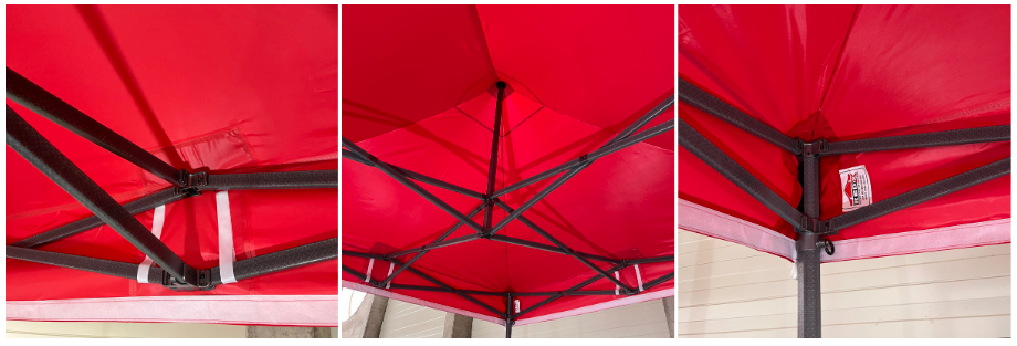 - Systém suchých zipů ke správnému uchycení a napnutí střechy na hliníkovou konstrukci.