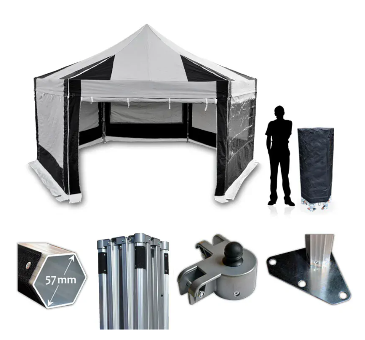 6m x 6m HEXAGON pevná hliníková konstrukce rámu (PROFI EXTREME varianta).