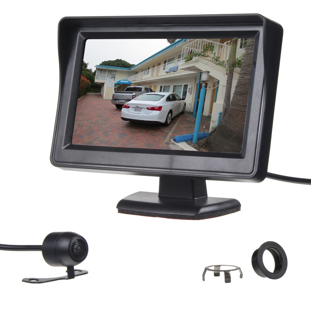 Parkovací set - kamera s 4,3" monitorem je určena pro detekci překážek za vozidlem. Systém je aktivován při zařazení zpátečky. Kamera zobrazuje prostor za vozidlem na 4,3" displeji LCD. Kamera je určena k montáži do nebo vně nárazníku např. nad SPZ.