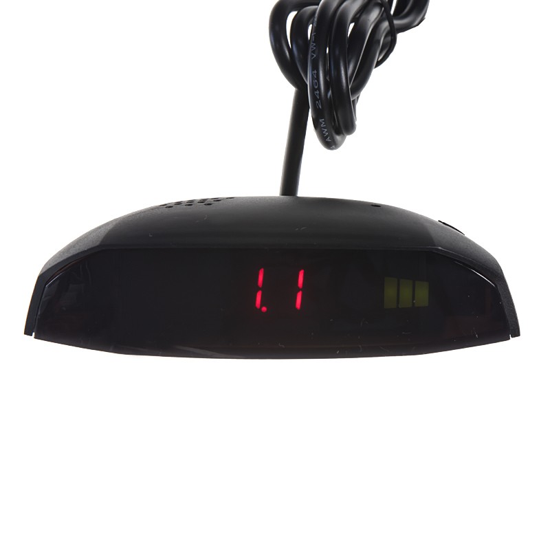 Parkovací systém s LED displejem, zadní s 4 čidly (instalace z vnitřní strany nárazníku) je určený pro detekci překážek za vozidlem, bez nutnosti protahování kabelů ze zadní části dopředu, informace jsou přenášeny digitálně po napájecím kabelu.