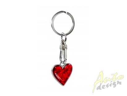 Přívěsek na klíče červené srdce, kovový, stříbrný