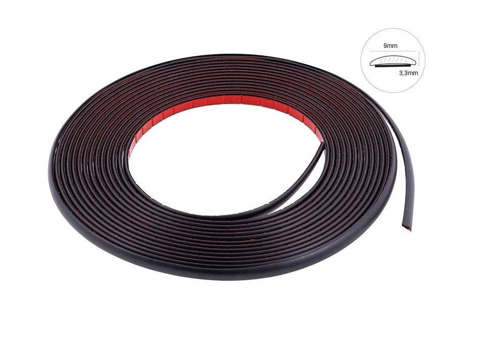 Pružná ozdobná lišta v matné černé barvě je odolná vůči povětrnostním vlivům. Montáž je velmi snadná. Pásek má ve spodní části silnou oboustrannou pásku.