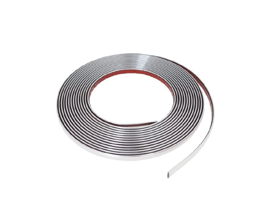 Flexibilní chromovaný dekorativní pásek je odolný proti povětrnostním vlivům. Montáž je velmi snadná a probíhá pomocí oboustranné pásky.