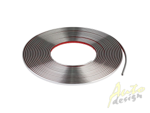 Flexibilní chromovaný dekorativní pásek je odolný proti povětrnostním vlivům. Montáž je velmi snadná a probíhá pomocí oboustranné pásky. Může být použit jako: výzdoba vozu uvnitř - na palubní desce vnější dekorace automobilu - na nárazníky a dveře Rozměry: šířka: 9 mm délka: 8m tloušťka 3,3mm Montáž: Povrch důkladně očistěte - odstraňte zbytky oleje a mastnoty. Umístěte lištu na karoserii a označte polohu. Odstraňte ochrannou oboustrannou pásku a nalepte proužek podél vyznačené čáry. Stiskněte lištu prsty po celé délce. Pozor. namontujte lištu, když je teplota vzduchu nad 18 ° C. Vyvarujte se mytí automobilu v automatické myčce několik hodin po instalaci. rozměr 9mm barva: chromovaná cena uvedena za 1bm