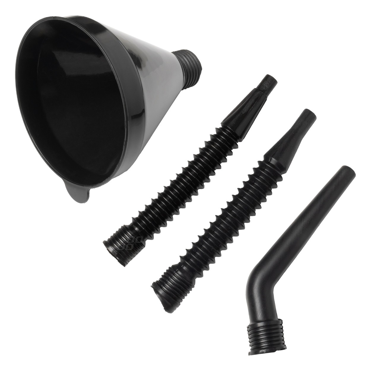 Všestranný a spolehlivý černý plastový trychtýř se sítkem, navržený pro maximální funkčnost. Tento čtyřdílný trychtýř o průměru 13 cm je nezbytným nástrojem v každé garáži, dílně i domácnosti.