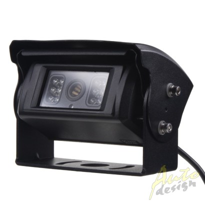 Kamera CCD s IR světlem a zaklápěním, vnější, určená pro montáž především na nákladní vozy, autobusy, karavany či dodávky. Propojení 4-PINovým kabelem