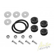 Jištění (úchyty) pro rychlou montáž / demontáž kapoty, víka nebo nárazníku. Balení obsahuje 4ks upínek (kladek), 2ks gumových kroužků + šroubky, matice a podložky pro montáž Průměr upínek (kladek) 24mm Barevné varianty: elox - duhové, zlaté, červené, fialové, stříbrné, černé, zelené a modré vyberte z variant
